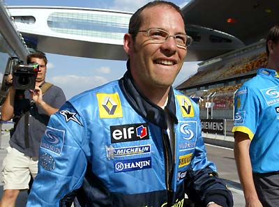 One champion Jacques Villeneuve of Canada, wearing Renault team overalls,