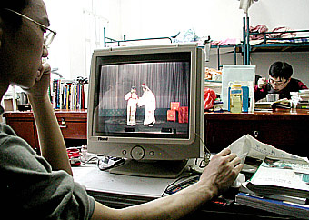 College students enjoy themselves at a university dormitory. The education ministry's controversial ban on college students' renting off-campus places has trigger hot debate. [newsphoto]