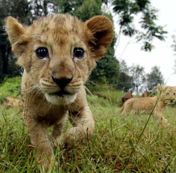 A lion cub is seen walking in the grass at Nairobi animal orphanage in Kenya in this July 2004 file photo. [Reuters]