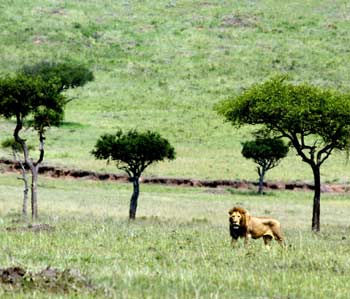 A lion is seen walking in Kenya's national park Masai Mara in this March 2004 file photo. [Reuters]