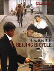 A copy of the poster of 'Beijing Bicycle' directed by Wang Xiaoshuai [sina/file]