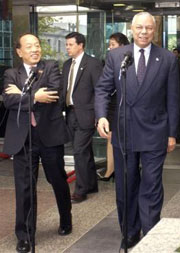 "At the same time, I wish to point out that in any country its domestic law should not go above its international commitments," he said. Li also said: "The Chinese Government and Chinese people are ready to use our maximum sincerity and make our best efforts to realize a peaceful reunification of the country and find a peaceful solution to the Taiwan question. "However, we will never, ever allow anyone to use any means to separate Taiwan, which is an inalienable part of the Chinese territory, from the rest of our great motherland." He stressed that China is firmly opposed to the sale of weapons by any foreign country to Taiwan, "because we don't think it is in the interest of our peaceful efforts towards the resolution of the Taiwan question. "It does not serve the interests of peace and stability across the Taiwan Straits, and eventually it will not serve the interests of those countries who are prepared to sell weapons to Taiwan," he said. Powell said the United States does not support a movement towards independence on the part of Taiwan and the ultimate settlement of the Taiwan question has to be acceptable to both sides of the Taiwan Straits. Speaking after his meeting with China's foreign minister, Powell told reporters: "I once again reaffirmed our one-China policy and the strength of the three communiques and also noted our obligations under the Taiwan Relations Act and reaffirmed what President Bush has said a number of times, that we do not support a movement towards independence on the part of Taiwan." Foreign Minister Li made the point that the Taiwan Relations Act, which violates the Sino-US communique on establishment of full diplomatic relations, should not be pre-eminent over the US's international commitments. The Taiwan Relations Act was approved by the US Congress in 1979, weeks after Washington established diplomatic relations with Beijing. Powell stressed that "there is no support in the United States for an independence movement in Taiwan, because that would be inconsistent with our obligations and our commitment to our one-China policy." Asked by reporters whether the United States is going to ignore the voice and desire of a billion-plus people on the Chinese mainland, Powell responded "of course not." "It has to be acceptable to both sides (of the Taiwan Straits). That's what reconciliation is all about," said Powell. He added: "We strongly support our one-China policy, which has stood the test of time. It has benefited people in Taiwan, benefited people on the mainland, and it's benefited the international community and certainly benefited the United States." The resolution of the nuclear issue on the Korean Peninsula through the framework of the six-party talks is the only "feasible and correct" option, said Li. "All the parties who attend the Beijing six-party talks, and in fact the entire international community, have expressed the view that the resolution of the nuclear issue on the Korean Peninsula through the six-party talks is the only feasible and proper option," Li told reporters. The Chinese foreign minister said there have emerged "some new complicating factors and new difficulties" concerning the next round of the six-party talks. "This has required all of us to continue to adopt a more peaceful means to the nuclear issue on the Korean Peninsula, through the framework of the six-party talks, because nothing is more precious than peace," he said. For his part, Powell said he believed the six-party talks framework will work. "I think that the six-party framework is what we should be concentrating on, and not any other means of dealing with this right now. "I am quite confident that the six-party framework is a framework in which this matter will be dealt with for the foreseeable future because it serves the interests of all parties, " said Powell. The United States said on Wednesday that it was still committed to the six-party process despite the fact that talks were not taking place in September as scheduled. "We remain committed to the six-party process. We think that is the way to move forward," State Department spokesman Richard Boucher told a news briefing on Wednesday. "It makes sense to do it that way, it is the way to do it. It has shown that it is a process that can work," said Boucher. The United States has said that it would like to see another round of the six-party talks on the nuclear issue of the Democratic People's Republic of Korea (DPRK) take place and said it was continuing to work with the other parties to advance the six-party process and "it is not something we are giving up on. " Three rounds of the six-party talks, hosted by China, have thus far been
