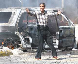 Last month saw at least 39 car bomb attacks in Iraq — the highest number in any month since the U.S.-led invasion in March 2003. On Sept. 30, insurgents set off a series of vehicle explosives that killed at least 35 children and seven adults at a government ceremony in Baghdad. Two more car bombs exploded Monday in Mosul, 225 miles northwest of Baghdad. One of the blasts killed a civilian bystander and two people believed to be transporting explosives, said Capt. Angela Bowman, a military spokeswoman. Hospital officials said they treated 11 wounded. The second bomb targeted a U.S. Army convoy, wounding one American soldier, Bowman said. In Baqouba, a city 35 miles northeast of the capital, a police commander was assassinated in a drive-by shooting, police said. Insurgents also fired mortar rounds at a municipal building, killing one person and wounding seven. There were also assassinations in Baghdad, where gunmen killed a senior official of Iraq's Sciences and Technology Ministry and a female employee near the southeastern Zayona suburb, Abdul-Rahman said. Monday's violence came despite promises by U.S. and Iraqi officials to crack down on insurgents ahead of elections slated for January and wrest key parts of the country from their control. Late Monday, U.S. warplanes attacked the sprawling Baghdad slum of Sadr City, and skirmishes were continuing between American troops and rebels in the area, a spokesman for the insurgents said. The U.S. military had no information on the reported fighting, but American forces have staged almost daily attacks there in an effort to root out militiamen loyal to radical Muslim cleric Muqtada al-Sadr. In Fallujah, American warplanes unleashed strikes against suspected terrorist hideouts and weapons caches early Monday. At least 11 people, including three women and four children, died in the attacks and 12 others were wounded, hospital officials said. The military, which regularly accuses hospitals of inflating casualty figures, said the strikes targeted followers of Jordanian terrorist Abu Musab al-Zarqawi. It was the latest in weeks of strikes in the city 40 miles west of Baghdad aimed at groups with links to terrorists, particularly al-Zarqawi's network. Followers of the Jordanian militant have claimed responsibility for a string of deadly bombings, kidnappings and other attacks across the country. In Samarra, 60 miles northwest of Baghdad, U.S. troops patrolled in tanks, armored personnel carriers and Humvees as sporadic gunfire broke the relative calm Monday. U.S. soldiers, accompanied by Iraqi translators carrying lists, entered houses asking about specific people. Iraqi National Guard forces have captured 40 foreign fighters, including