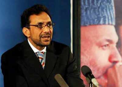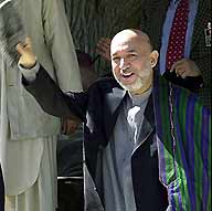 Ahmad Zia Masood, Afghan President Hamid Karzai's running mate for Saturday's historic presidential election, escaped unhurt October 6, 2004 when a mine exploded under his convoy in the remote northeast of the country. Masood, brother of the late Northern Alliance leader Ahmad Shah Masood, is seen campaigning in Kabul October 2. [Reuters]