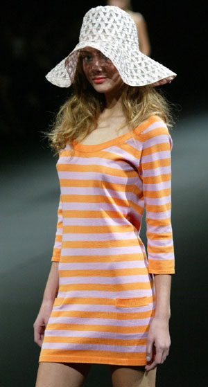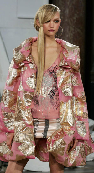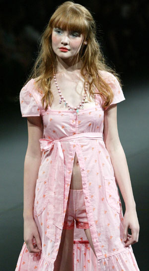 A model presents this creation by French designer Lolita Lempicka during her Spring-Fall 2005 ready-to-wear fashion show in Paris, October 8, 2004. [Reuters]