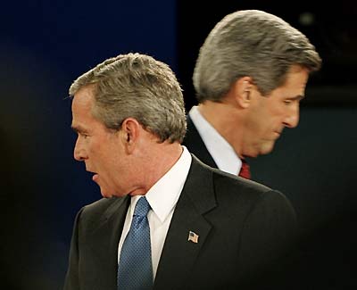 Expanding his criticism of Bush on Iraq, Kerry said the president had diverted resources from the war against terror and also ignored a threat from Iran as it accelerated its nuclear program. "It's a threat. It's a huge threat. It has grown while the president was preoccupied with Iraq," the Democratic challenger said. Responding to criticism from Kerry in their second debate, Bush said, "That answer almost made me want to scowl." He went on to accuse the senator of advocating a policy that was "naive and dangerous" for bilateral talks between the United States and North Korea rather than the six-nation negotiations set in motion by the Bush administration. Bush also set to lay to rest persistent rumors that the war in Iraq would require the nation to return to a military draft. "We're not going to have a draft. Period," the president said. The Republican incumbent accused Kerry of denigrating the U.S.-led coalition in Iraq with his claim that the United States is shouldering 90 percent of the costs and casualties. "We've got 30 countries there," Bush said, his voice rising. He mentioned Britain, Italy, Poland as well as other allies. "Mr. President, countries are leaving the coalition, not joining," Kerry said, asserting that eight countries are pulling out their troops from post-war Iraq. Bush and Kerry also were put on the spot about their plans for the economy. "We did something that you don't know how to do," Kerry told Bush. "We balanced the budget. And we paid down the debt of our nation for two years in a row and we created 23 million new jobs at the same time." He accused Bush of driving up the biggest deficits in history. "He's added more debt to the debt of the United States in four years than all the way from George Washington to Ronald Reagan put together. Go figure." The budget swung from a record US$313 billion surplus projected when Bush took office to a record $422 billion deficit this election year. One questioner asked Bush whom he would pick if there were a Supreme Court vacancy. "I'm not telling you," the president said. "I really haven't picked anybody yet." He added lightheartedly, "Plus I want them all voting for me." Kerry said that if he had to pick a Supreme Court justice, "I want to make sure we have judges who interpret the Constitution of the United States according to the law." Asked about abortion, Kerry, who supports a woman's right to have an abortion, noted that he was a Roman Catholic but said he could not let his faith influence his decision. In a long, rambling answer, he said the United States should not bar the use of federal money for family planning programs overseas. Referring to Kerry's answer, Bush said, "I'm trying to decipher that." Confronting the question directly, he said, "We're not going to spend federal money on abortion." The third and final debate will be held Wednesday in Tempe, Ariz., with the focus on domestic issues. |
