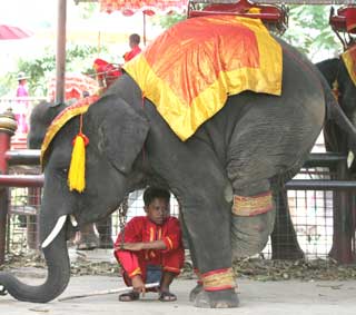 miles) north of Bangkok on October 8, 2004. The elephant is on the "Ten
