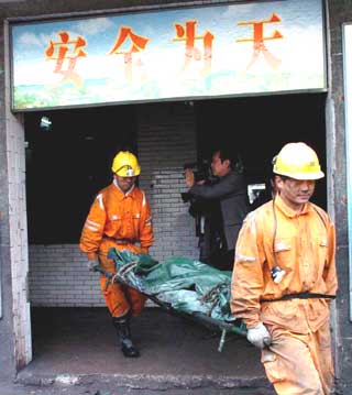 The cause of the blast is still under investigation. The accident took place at 10:10 pm on Wednesday. A gas monitoring system shows that just minutes earlier, gas density increased from 1.49 per cent to 40 per cent in the entire mine. A total of 446 miners were at work in the mine when the accident occurred. Some 298 miners escaped, with 21 injured. All the injured, including four severely cases, were sent to the General Hospital affiliated with the Zhengzhou Coal Industry Group. A detailed casualty list has not yet been made available. At the office building of the Daping Coal Mine, bodies of victims were covered with green canvas awaiting identification, the Xinhua News Agency said.