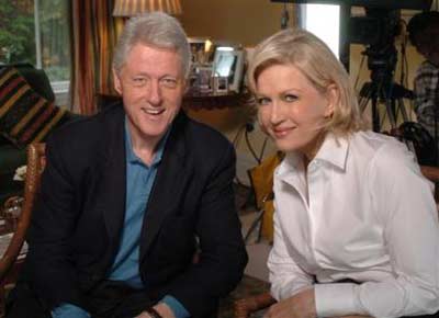 ABC News' Diane Sawyer and former US President Bill Clinton pose for a photograph during Sawyer's visit to Clinton's home in Chappaqua, N.Y. where she interviewed him about his recent heart surgery and recuperation, Sunday Oct. 24, 2004. [AP Photo]