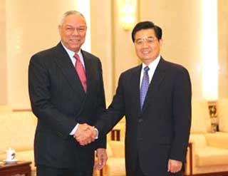 Beijing hopes Washington will uphold its promises on the Taiwan question and abide by the three China-US joint communiques, Hu was quoted as saying by a Chinese foreign ministry spokeswoman. Powell, on the second leg of an Asia-trip which included Tokyo and Seoul, held separated meetings Monday with his Chinese counterpart Li Zhaoxing and Premier Wen Jiabao before meeting with Hu. Describing the current situation across the Taiwan Straits as still very complicated and sensitive, Hu said the root cause for the tension across the Straits lies with attempt to separate Taiwan from China. China has warned the US side on many occasions that it should be responsible on the Taiwan question. China is resolutely opposed to US' arms sales to Taiwan and incorporating Taiwan into its planned theatre missile defence system. China already made solemn representations to the US side on many occasions and demanded the US fully recognize the danger of selling advanced weapons to Taiwan. Early this month, Hu had a telephone conversation with President George W. Bush, saying that China aims to resolve the Taiwan issue by peaceful means, but will never tolerate "Taiwan independence" and no one may separate Taiwan from China. The assertion came as Taiwan considers a purchase of US$18 billion worth of US missiles and other weapons. At Monday's meeting, Hu said the "Taiwan independence" forces' separatist activities are the greatest threat to peace and stability in the region. During the meetings with Chinese leaders, Powell said the US side will continue to stick to the one-China policy and the three joint communiques and does not support any effort aimed at "Taiwan independence." His comments were appreciated by the Chinese side. Powell praised the development of US-Chinese relations in the past four years, saying the US Government values highly the bilateral relations which have a direct influence on the stability of Asia and the world at large. Premier Wen echoed Powell's remarks on the positive trend of Sino-US ties.