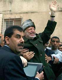 Israel has marked a possible burial site for Arafat in the Jerusalem suburb of Abu Dis, in the West Bank, security officials said. Though hard-line ministers at the meeting asked Sharon to refuse to allow Arafat back into the West Bank, the premier said he was sticking by the commitment to allow Arafat to return from France after treatment. Senior intelligence officials and representatives from the foreign and defense ministries briefed the Israeli Cabinet on Arafat's health and possible scenarios if he becomes incapacitated or dies. Foreign Minister Silvan Shalom said Israel's army would "demonstrate restraint" in military operations in the West Bank and Gaza until the Palestinian leadership situation became clear. "These are days of waiting, and during such days you act perhaps with a bit more caution," Shalom told Army Radio. |