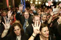 The president had hoped to increase his support among the religious right since 2000, but exit polls suggest there was little change. Kerry retained Gore's margins among blacks and union households, key parts of the Democratic base. His voters named the economy and Iraq as top issues. One in 10 voters were casting ballots for the first time and fewer than 10 percent were young voters, hardly the groundswell that experts had predicted. Kerry was favored by both groups, according to the surveys conducted for The Associated Press by Edison Media Research and Mitofsky International. Officials predicted a turnout of 117.5 million to 121 million people, the most ever and rivaling the 1960 election in the percentage of eligible voters going to the polls. Poring over exit polls and field reports, Bush's aides in Arlington, Va., identified low-turnout precincts and dispatched more walkers to them. In Boston, advisers gave Kerry a longer-than-expected list of TV interviews to conduct by satellite to Wisconsin, Minnesota, Colorado, New Mexico, Nevada and Oregon. That was an interesting list: Oregon was supposed to be safely Democratic and Colorado had seemed to be tilting toward Bush heading into Tuesday. In the final hours of the campaign, Kerry's aides tried to boost turnout in Hispanic areas by having the candidate's wife, Teresa Heinz Kerry, do Spanish-language television interviews. Exit polls showed the Democrat winning the Hispanic vote, but not by as much as Gore in 2000. Voters in Wisconsin, Michigan and Ohio received a wave of last-minute telephone calls as Kerry's strategists sought to nail down victories in those key Midwest battlegrounds. Bush won Alabama, Arizona, Arkansas, Florida, Georgia, Idaho, Indiana, Kansas, Kentucky, Louisiana, Mississippi, Missouri, Montana, Nebraska, North Carolina, North Dakota, Oklahoma, South Carolina, South Dakota, Tennessee, Texas, Utah, Virginia, West Virginia and Wyoming. Kerry won California, Connecticut, Delaware, the District of Columbia, Illinois, Maryland, Massachusetts, New Jersey, New York, Pennsylvania, Rhode Island, Vermont and statewide in Maine. One Maine vote remained a tossup. In the Senate, Republican Johnny Isakson took the seat held by retiring Democratic Sen. Zell Miller in Georgia. Republican Rep. Jim DeMint won the South Carolina seat held by retiring Democratic Sen. Fritz Hollings. And in North Carolina, Republican Rep. Richard Burr won the seat left open by Democratic vice presidential candidate John Edwards. Only nine of 34 Senate races on the ballot appeared competitive. One of them was held by Senate Minority Leader Tom Daschle, who was in a pitched fight against Republican John Thune. All 435 House seats were up for election, but Democrats had little hope of a takeover. Republicans hold 227 seats, Democrats 205, with one Democratic-leaning independent and two vacancies in Republican-held seats. With strategies molded by polls throughout the campaign, Kerry promised voters a new direction while Bush played up the risks of change. Eleven gubernatorial contests were being decided Tuesday, along with 5,800 legislative seats in 44 states. Former Bush administration budget director Mitch Daniels won the governorship in Indiana, taking the seat from the Democrats. Among the notable ballot measures, voters in 10 states approved propositions that would ban gay marriage. In California, voters approved spending $3 billion on stem-cell research. The war on terror aside, there were fresh reminders of the election's stakes. Eighty-year-old Chief Justice William H. Rehnquist, cornerstone of a conservative Supreme Court, disclosed Monday he was undergoing radiation and chemotherapy for his thyroid cancer, a sign that he had a potentially grave form of the disease. While neither candidate offered a specific exit strategy for Iraq, Kerry asserted that the election of a new president alone would persuade allies to take a greater share of the costs and sacrifices born by the United States. The Democrats said he hoped to start withdrawing troops from Iraq in the first months of his presidency. Bush said such talk only encouraged terrorists. The weapons of mass destruction Bush said were in Iraq were never found and more than 1,100 Americans have died in the conflict ! 976 of them since he declared an end to combat operations May 1, 2003. Kerry voted against the Persian Gulf War waged by Bush's father. He voted in favor of the 2002 resolution authorizing war in Iraq. On the stump, Bush called Kerry's a record of political expedience. Bush blamed the Sept. 11 attacks for the sluggish economy and said his tax cuts put the nation on the road to recovery. Kerry noted that Bush was the first president in eight decades to end his term with net job losses. Unabashedly conservative, Bush said he shared with voters the values of faith and family. Kerry said his faith and activities ! hockey and hunting ! put him in the mainstream, too. |