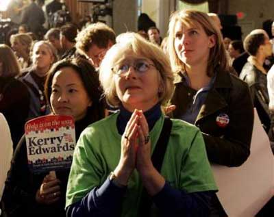 Kerry, watching the results in his hometown of Boston, did not make an appearance before reporters but sent out aides to predict a win. The dollar lost ground and U.S. Treasury prices firmed early on Wednesday after the uncertainty in Ohio made the market more cautious about betting on a Bush victory. The lingering bitterness over that election, when Bush lost the popular vote to Democrat Al Gore but narrowly won the Electoral College after the U.S. Supreme Court stopped a vote recount in Florida, fueled Democratic get-out-the vote efforts this year. |