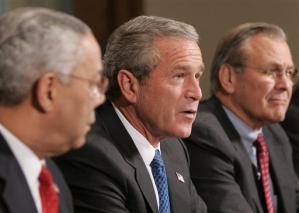 Colin Powell, Bush, Secretary of Defense Donald H. Rumsfeld.