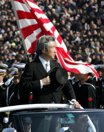 Japan's Prime Minister Junichiro Koizumi reviews members of the Japan Self-Defence Forces at Asaka training ground in Asaka about 25km (16 miles) northwest of Tokyo November 7, 2004. About 4,100 personnel and 250 military vehicles took part in Sunday's ceremony which marked the 50th anniversary of the formation of Japan's post-World War Two military. [Reuters]