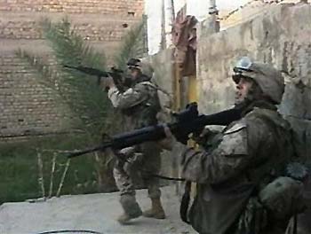 In what could be a sign of progress, the Marines began turning over the northern neighborhood of Jolan to Iraqi forces, signaling that they consider the area relatively secure. Jolan, a dense, historic district of tight alleyways, was considered one of the strongest positions held by militants inside Fallujah and parts of it saw heavy fighting. In one of the most dramatic clashes Wednesday, snipers fired on U.S. and Iraqi troops from the minarets of the Khulafah al-Rashid mosque, the military said. U.S. Marines called in an airstrike, and an F-18 dropped a 500-pound bomb on the mosque, destroying both minarets. Pool footage showed U.S. forces battling insurgents in a neighborhood surrounding the mosque. Troops were pinned down by gunfire on a rooftop, forced to hit the deck and lay on their stomachs. "When they're using a mosque to do command and control for insurgents and kill my fellow Marines and soldiers and airmen that are out here ! no holds barred, the gloves are off," said Marine Staff Sgt. Sam Mortimer. U.S. troops were also skirmishing with insurgents late Wednesday in Fallujah's Wihdah and Muhandiseen neighborhoods, according to Iraqi journalist Abdul Qader Saadi, who said he saw some damaged and burnt armored vehicles and tanks. Saadi and other witnesses reported bodies on the streets, with dogs hovering around them. Residents said they were running out of food in a city that had its electricity cut two days ago. Most of Fallujah's 200,000 to 300,000 residents are believed to have fled the city before the U.S. assault. Civilian casualties in the attack are not known. The top U.S. commander in Iraq, Gen. George Casey, told President Bush on Wednesday that his troops were "making very good progress" securing Iraq. Bush said his commanders had not asked for more troops. The U.S. military has sent up to 15,000 U.S. and Iraqi troops into the battle, backed by tanks, artillery and attack aircraft. Some officers believe many insurgents likely abandoned the city before the offensive was launched and moved elsewhere to continue their campaign of violence. The most wanted guerrilla, Jordanian militant Abu Musab al-Zarqawi, is thought to have fled. During the assault on the Fallujah ! once the insurgents' strongest bastion, 40 miles west of Baghdad ! rebels have continued heavy attacks elsewhere. At least 28 people were killed in violence across the country outside Fallujah Wednesday ! including 10 killed in a Baghdad car bomb. Another car bomb exploded in northern Iraq near a convoy carrying the governor of Kirkuk province, killing one bystander and injuring 14 others. Police said Governor Abdul-Rahman Mustafa, a Kurd, was unharmed. Militants on Tuesday night kidnapped three relatives of Prime Minister Ayad