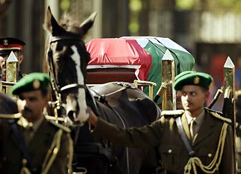 Egyptian President Hosni Mubarak, accompanied by Palestinian and Arab leaders including Saudi Arabia's de facto ruler Crown Prince Abdullah and Syrian President Bashar al-Assad, led the mourners in Cairo.