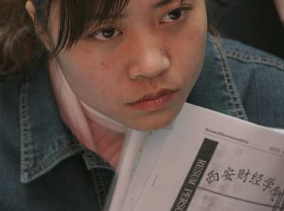 apply for jobs at a job fair in Xi'an, Northwest China's Shaanxi