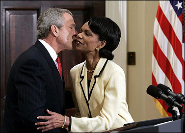 President George W. Bush sent tongues wagging this week, planting kisses that to many Americans looked more personal than professional on his two women cabinet nominees.