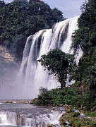 The 74-meter tall Huangguoshu Fall, which is China's largest fall, boasts abundant water throughout the year. Although the water's wildness does not mask its delicacy and elegance, its great momentum overwhelms everyone who has been to the fall. Rainbows are often seen on the fall, leading the visitors to a dreamlike world. The karst landscape nearby is also another tourist attraction.