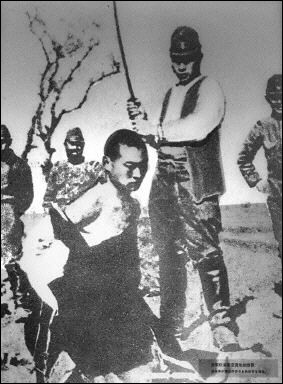 Japanese Imperial Army soldiers about to behead a Chinese man in Nanjing. A Chinese court has begun hearings in a suit brought by an elderly woman enraged that a Japanese writer called her testimony of the infamous 1937 Nanjing Massacre a lie. [AFP]