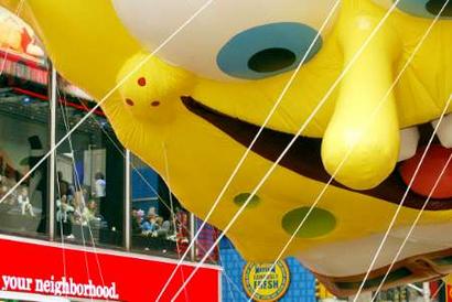 The Spongebob Squarepants balloon makes its way down Broadway for its first appearance in the Macy's Thanksgiving Day parade, in New York, November 25, 2004. Thousands gathered to watch the annual Thanksgiving day tradition. [Reuters]