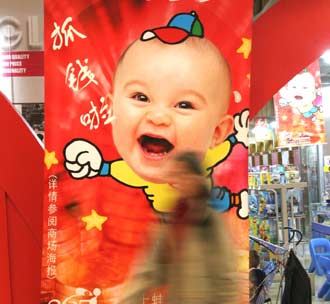 Right after he was born, dozens of sales ladies from various gift companies miraculously appeared at the hospital to congratulate me and recommended their good quality, red painted eggs (usually used to celebrate the birth of a child). I paid 175 yuan (US$21) for 250 such eggs to hand out among our relatives and colleagues. A week later I went home and was immediately bombarded by hundreds of phone calls ranging from miscellaneous milk powders to numerous insurance policies. I bought one sponsored by Shanghai Child Welfare Foundation and refused all the others. That was not the end, however. Since then our mailbox has been stuffed with tons of ads and journals focusing on infant commodities and training, with my son’s name and address on every one of them. I felt very happy to see my boy cared for by so many people and greatly appreciated the journals as they taught me in detail how to be a qualified mother. For example, I learned to hire a professional baby-sitter at 2,000 yuan (US$240) and to rear the boy in a most scientific way for the first month. I learned to make a 2,000 yuan (US$241.6) foetal hair brush, as well as 450 yuan (US$54) hand-and-foot prints in commemoration of the significant birth of my baby. And I learned to buy capsules for the development of his cranial nerves at 52-104 yuan (US$6-12) a month. I could have attended certain infant training programmes with my son, but I did not have the strength. Then I found my son was not so bright as those trained infants. Three months later, my baby was allowed to go out for sunlight and fresh air for two hours a day. Every time I took him out for a walk, sales people would spring up as if from nowhere, praised the little boy for his cuteness and then advised his going to a training centre for a second language. But how could he pick up a second language while he was unable to speak the first language? "You will regret not signing up for our programme," they said. I did regret it, as quite a few infants in our neighborhood registered later at 5,000 yuan (US$602) and my parents accused me of irresponsibility. To make up for that, I bought a series of "My First Book" for him to tear up. (It is said that we should let them "read" such books from their birth) and began to take him to swim once a week in a pool for about 15 minutes at 58 yuan (US$7) per swim. And I had to hire a taxi to get there and come back.