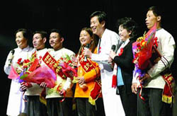 The drama troupe, founded by HIV carriers, was from Zizhong county of southwestern China's Sichuan Province. Starting in 2003,the troupe began performing at local bazaars and theaters. This was the first time that they've staged in the Chinese capital. "They are great performing artists, whom I admire for their courage and high sense of responsibility. They deserve respect of the whole society," Pu Cunxi, a well-known name to China's movie fans, said The famous actor who played a doctor in the play. Together with a distinguished female movie star, Jiang Wenli, Pu recited a poem depicting love stories of an HIV positive couple, named Cao Xueliang and Wang Daiying. Pu and Jiang hugged the couple after performance. "I wish them joy and luck and hope they would continue combating the virus bravely," Jiang said. More and more, Chinese HIV carriers are publicly raising awareness of the deadly disease. On the occasion of 17th World AIDS Day, which falls Wednesday, Chinese HIV carriers hosted painting shows, produced TV documentaries and published books to tell their stories and draw public attention. "More people infected with HIV have stepped out and are actively involved in public activities last year. This is for sure an apparent sign," Li Xiang, an HIV carrier said. The play was broadcast live by one of China's most popular website sohu.com. "The more we know about HIV/AIDS, the less we feel scared. Let's give our