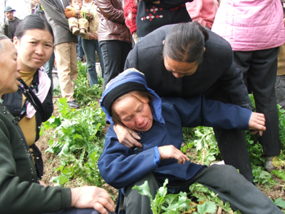 Villagers in Nayong County, Guizhou Province, mourn after their families were buried in collapsed houses after a major landslide rocked the region Friday. [newsphoto]