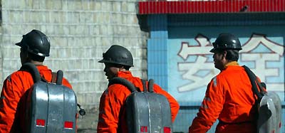 Rescuers set for an underground search for survivers in a local mine in Northwest Shaanxi Province. The blast killed a total of 166 miners. [newsphoto]