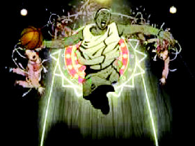 It shows James, the Cleveland Cavaliers' reigning NBA rookie of the year, defeating the kung fu master, two women in traditional Chinese attire and a pair of dragons, considered a sacred symbol in traditional Chinese culture.