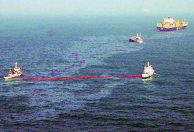 The oil is being forced out to sea by the wind, meaning shore areas have been largely untouched, the sources said. The oil slick currently forms a 17-kilometre-long and 20 to 200-metre-wide belt at the mouth of the Pearl River. Two foreign ships, one registered in Panama and the other in Germany, collided at 9:35 pm on Tuesday. The Panamanian ship was sailing from Shenzhen to Singapore and the German vessel was bound for Shanghai from Shenzhen. A fuel storehouse of the German ship broke in the collision and started leaking crude oil. It is the biggest ever spill in Chinese waters, said Wang Xiangtao, director of the Guangdong Provincial Marine Bureau. The two ships are not in the danger of sinking and no one was hurt in the accident, the sources said. The ministry has been monitoring the progress of the oil and trying to stop it floating to islands. Experts have been invited to put forward plans for the cleanup to keep damage to a minimum. Xu Zuyuan, vice-minister of communications, has urged all relevant departments to do what they can to prevent the pollution from extending to neighbouring Hong Kong and Macao waters. |