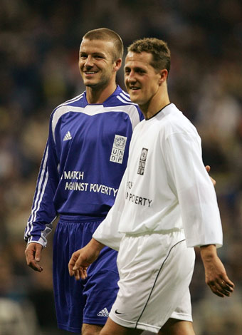 The game featured a strong representation of Real Madrid players, including David Beckham and the club's sports director Emilio Butragueno, a former star striker for the team. Other participants included the Czech Republic's Jan Koller and Netherlands' Edgar Davids. In addition, Formula One's Michael Schumacher played and swapped teams at halftime, while teenage Spanish Davis Cup star Rafael Nadal also donned boots in the second half. Several retired players such as Argentina's Fernando Redondo, Serbia-Montenegro's Predrag Mijatovic, and Croatia's Davor Suker also appeared. Ronaldo's team was coached by Luiz Felipe Scolari, Mario Zagallo and Carlos Alberto Parreira, all of whom have guided Brazil to World Cup triumphs. Zidane's side was under Italy coach Marcello Lippi and Frenchmen Didier Deschamps and Luis Fernandez. Ronaldo and Zidane also led teams in the first "Match against Poverty" in Basle, Switzerland a year ago, and generated over a million Swiss francs (US$866,000).
