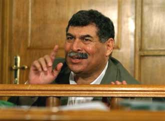 Former Iraqi Defense Minister Gen. Sultan Hashim Ahmad, appears in a courtroom at Camp Victory, in this July 1, 2004 file photo. Saddam Hussein's defense minister, who surrendered to American forces last year, will appear along with another notorious general, known as Chemical Ali, when investigative trials open next week, an official said Friday Dec. 17, 2004. [AP]