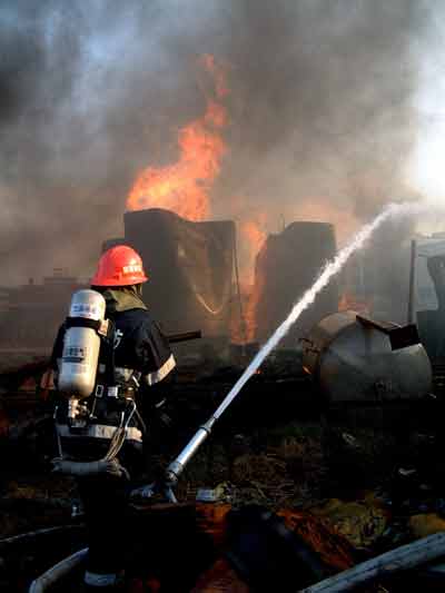 after oil tanks exploded Wednesday at the Zhennali Polyurethane Co.