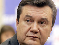 Ukrainian Prime Minister and presidential candidate Viktor Yanukovich looks on during a news conference at his headquarters in Kiev, December 27, 2004. [Retuers]