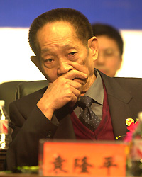 Yuan Longping, member of CAE, listens to a speech delivered by Nobel laureate Edmond H.Fischer on November 13, 2004. [newsphoto]
