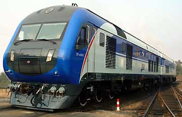 An undated file photo shows a home-made Dongfeng-11G locomotiv which is designed for the fifth speed-up of China's rail traffic.