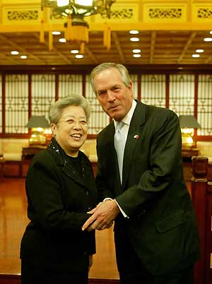 Vice-Premier Wu Yi meets with US commerce secretary (newsphoto) Updated: 2005-01-14 02:57