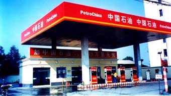 A gas station operated by PetroChina is ready for service in Beijing in this September 18, 2004 file photo. PetroChina said oil and gas production rose 3.1 per cent year-on-year to 917.9 million barrels of oil equivalent (BOE), with gas production mainly responsible for the rise. [newsphoto]
