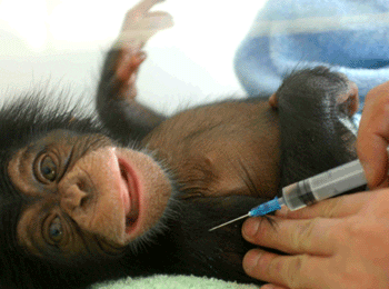 Baby chimp receiving a vaccine (newsphoto) Updated: 2005-01-19 17:35