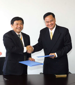 Taiwan-based China Airlines in Shanghai January 19, 2005 after signing a