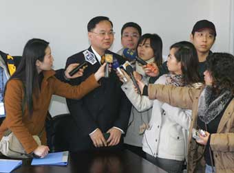 from journalists in Shanghai January 19, 2005 after signing a ground
