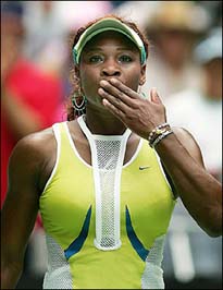 Seventh seeded Serena Williams of the US blows a kiss to the crowd following her victory over Dally Randriantefy of Madagascar in 2005 Australian Open second round in Melbourne. [AFP]