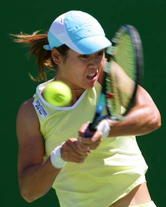 Andy Roddick of the U.S. makes a backhand return during his third round match against Jurgen Melzer of Austria at the Australian Open at Melbourne Park, Melbourne, Australia, Saturday, Jan. 22, 2005. [AP]