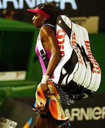 Venus Williams, of the United States, eighth seed, leaves the court after her fourth round loss to Alicia Molik of Australia, 10th seed, at the Australian Open at Melbourne Park, Melbourne, Australia, Monday, Jan. 24, 2005. Molik won the match, 7-5, 7-6. [AP]
