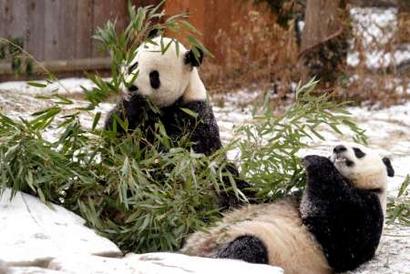 year's first snowfall in Washington, January 22, 2005. Giant pandas are
