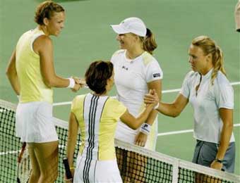 Melbourne, Australia, Friday, Jan. 28, 2005. Molik and Kuznetsova won in