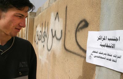 centres, in the northern city of Mosul, January 29, 2005. Insurgents vowing