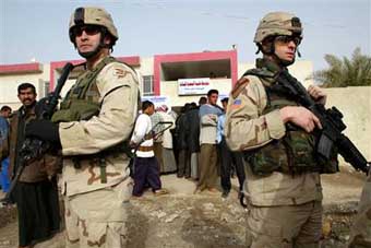 "Following the 7:45 p.m. (Saturday) attack on the embassy, the men fled the scene of the rocket launch, but were tracked to a residence in southeastern Baghdad," the statement said. "Task Force Baghdad ground troops descended on the home, detaining all seven suspects." "This was a great example of quick reaction on the part of some superb cavalry troopers," said Brig. Gen. Michael Jones, assistant division commander for the 1st Cavalry Division and Task Force Baghdad. "It's one more example to the insurgents that Iraqi and multinational forces will hunt down those responsible for these acts of terrorism." The rocket fell into the Embassy's compound on the eve of Iraq's national elections near the building itself in the heavily fortified Green Zone in central Baghdad. One civilian and one Navy sailor, both assigned to the Embassy, were killed in the rocket attack, a military official said, also on condition of anonymity. Of the four injured Americans, two were military, one was a civilian and the fourth was as yet underdetermined, the military official said. Embassy spokesman Bob Callahan confirmed the embassy had been hit in an attack, but could give no details about casualties. The second Embassy official, speaking anonymously, then confirmed that two had been killed and four injured. Earlier Saturday night, sirens wailed briefly at one point from the Green Zone, but it was not clear if they were linked to the attack. |